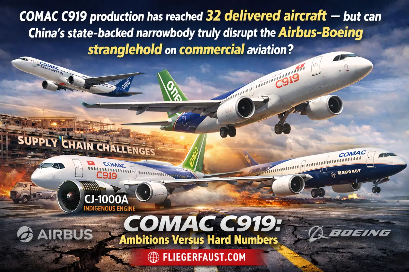 The geopolitical context intensifies the risk. Specifically, on January 6, 2025, the Pentagon re-added COMAC to its Chinese Military Companies list under Section 1260H. Admittedly, COMAC is not currently on the Commerce Department’s Entity List, which would impose the strictest licensing requirements. Still, the May 2025 suspension demonstrated that Washington can and will use this leverage. Similarly, an attempt by COMAC to import LEAP-1C engines through our Fliegerfaust analysis of tariffs and aerospace trade encountered complex regulatory obstacles, further underscoring the programme’s exposure.