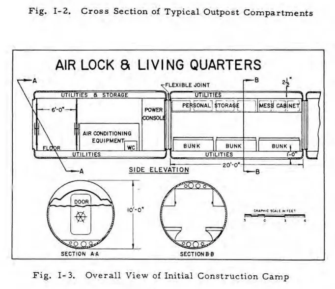 The Army was not alone. A separate Air Force Ballistic Missile Division study, titled “Military Lunar Base Program / S.R. 183 Lunar Observatory Study” and dated April 1960, outlined a phased plan for a permanent underground lunar base. Notably, the study specified a 21-person crew complement.