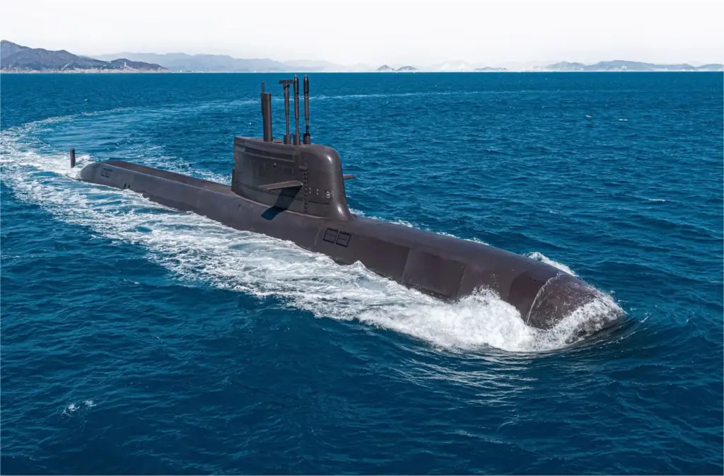 Hanwha Ocean is fielding the KSS-III Batch II submarine — a design already in service with the Republic of Korea Navy. Three Batch-I vessels have operated since 2021. A Batch-II boat launched in October 2025. The KSS-III employs lithium-ion batteries, an AIP system, and vertical launch tubes capable of firing ballistic and cruise missiles.